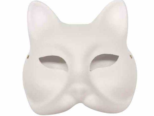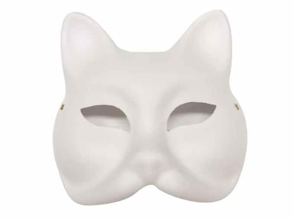 紙素材の無地の猫のお面です。ペンや色鉛筆、絵の具などで着色して好きな猫のお面を作ることができます。