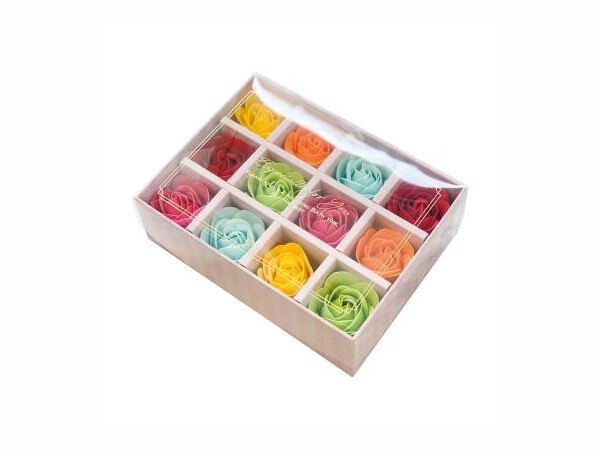 見て香って、お風呂で楽しめる「花のカタチの入浴剤」カラフルに並んだバラの花がポップで可愛いボックス。ギフトとしても普段使いにも。 花びら一枚一枚がバスペタルになっており、お風呂に溶かしながらほのかな香りと泡をお楽しみいただけます。インテリアフレグランスとしてもやさしいフローラルの香りをお部屋でも楽しめます。
