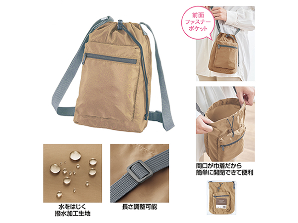 | 商品名 | 撥水加工のポケット付きショルダー巾着ポーチ 1個 |