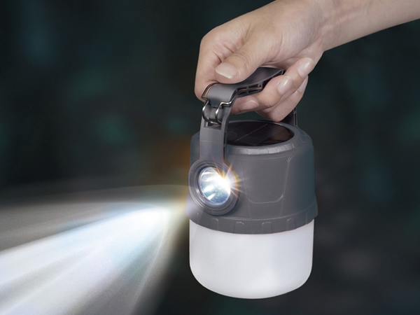 懐中電灯(ライト)としてもランタンとしても使えるのでいろいろと便利。電源はソーラーとUSBの充電なのでアウトドアなどでしっかる使いたいときはUSBで充電しておくと安心です。普段は日の当たるところに置いておけば急な停電などの場合に一時的に使うのには十分使うこともできます。