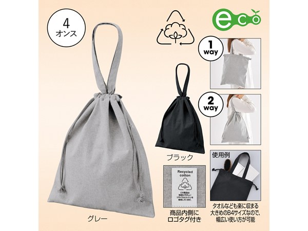 | 商品名 | リサイクルコットン巾着バッグ 1個 |