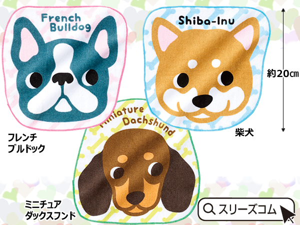 | カラー | 柴犬・フレンチブルドッグ・ミニチュアダックスフンド 3柄取り混ぜ 色・種類 指定できません![]() |