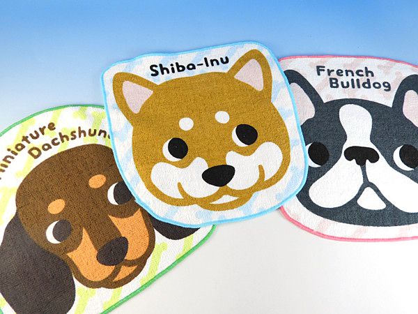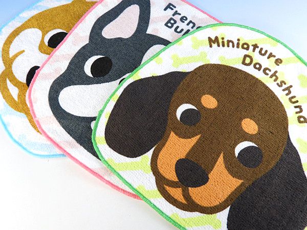 ハンドタオルの柄柄として、表情豊かなかわいい、犬のデザインとなっております。