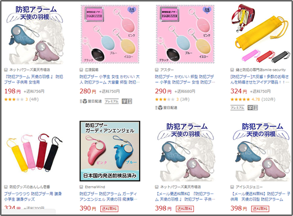 ちょっと気になるので、自分の子供に防犯ブザーを持たせるなら…と思って楽天市場で価格の安い物から見てみました。