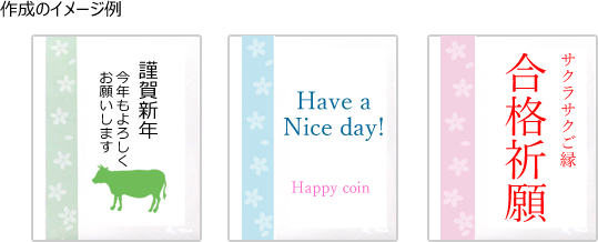 縦帯の右側の白いスペース部分に好きなメッセージを入れることが可能です。