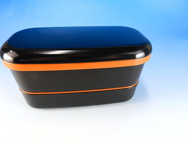 本体のメインカラーとなっている黒と仕切り部分に使用されているオレンジの組み合わせがシックで「お重」をイメージさせる2段重ねのランチボックスです。食品を扱う上で信頼と実績のメイドインジャパンなので記念品として安心してお使い頂けます。お弁当を用意する上で重宝する2段重ねの仕様と、片付けの際にはコンパクトに1段に収納できるので実用性も十分なアイテムです。