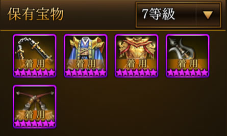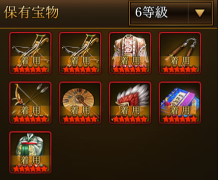 三国志曹操伝オンラインにおいて、中級レベルになると、ほぼ宝物レベルで6以上を数個保有している形になります。