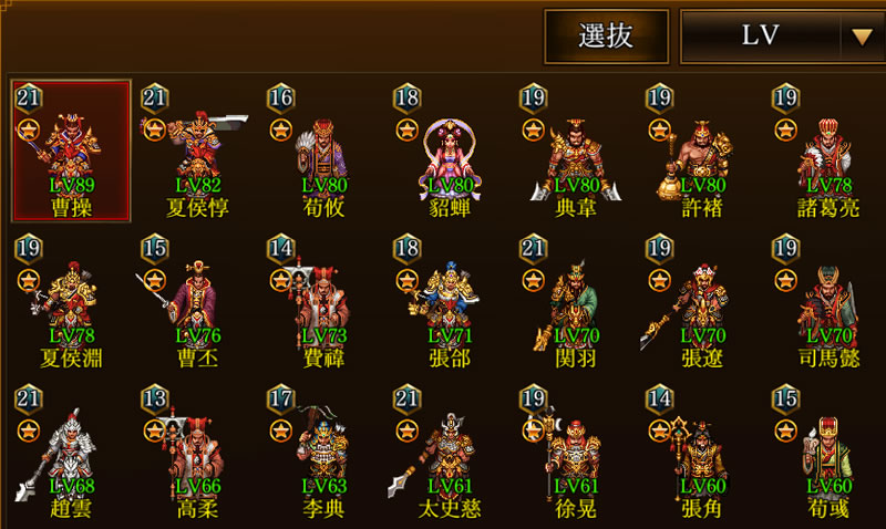 現在、主人公の「曹操」と「夏侯惇」であり、次に「孔明」を候補としているだけです。