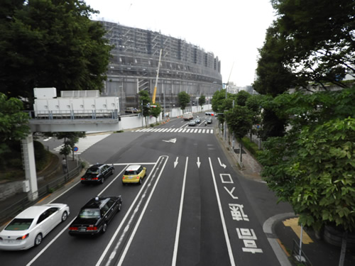 外苑橋から見ると、都心の中にあるため、アスファルトだらけです。