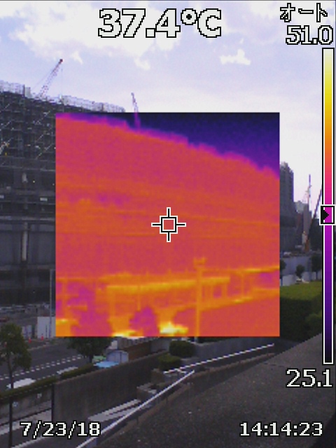 東京体育会館から撮影。温度は37,4度。
