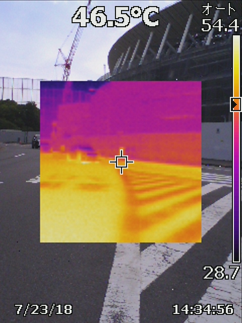 てっきり競技場本体は40度以上になっていると想定したのですが、意外にも40度を下回っております。