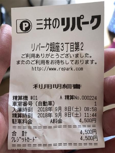 約3時間くらい駐車して4,500円!