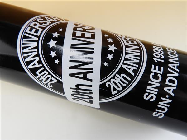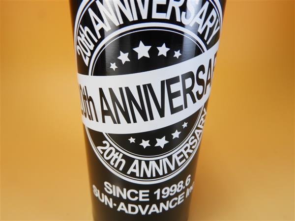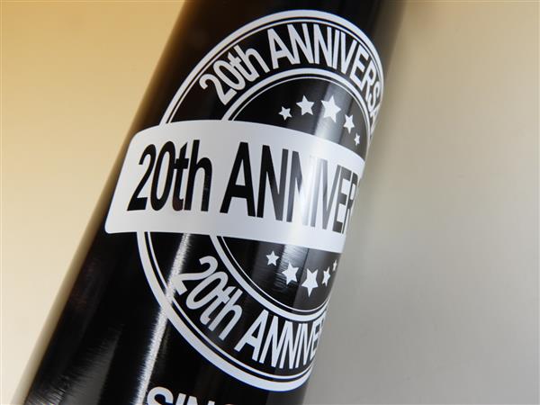 周年記念品のデザインで、非常にハイセンスなデザイン。20周年のデザインですが、こうした印刷は、世界で1個の記念品を制作する際に、非常に重要であり、なおかつ、参考になります。