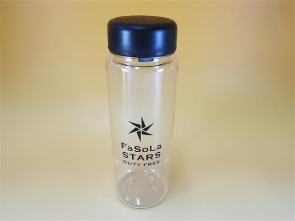 シンプルなクリアボトルにワンポイント印刷。正面ワンポイントです。
