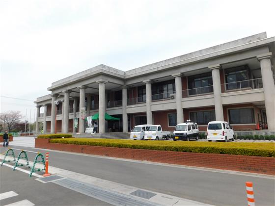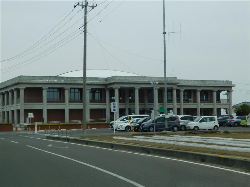 大きさ的にいえば、左半分が資料館で、右半分は1階が事務であり公民館施設。