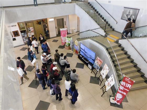 中央ロビーには大型テレビで、渋沢栄一の生涯のVTRが流れております。