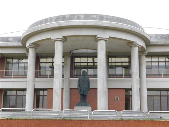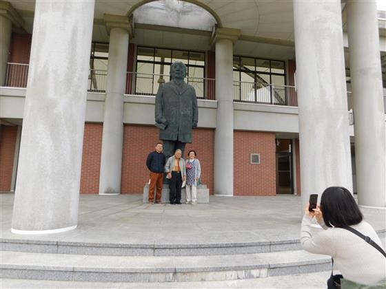 裏に行くと、大きな銅像があります。