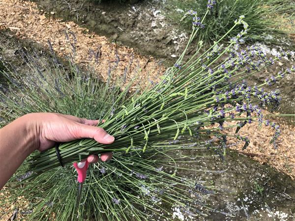 切った花は水に入れても元気になるタイプの花ではないので(ラベンダーは木だから水上げが悪いのです)部屋につるして放置で楽しみます!