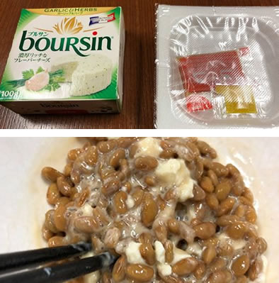 納豆にはバターとかブルサンを入れたり、ネギを入れたりでご飯と一緒に、