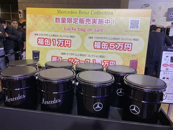 1月上旬の開催のため、毎年、何かしらの企画がありますが、今年はベンツの「福缶」がありました。