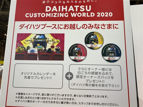 その他、ダイハツブースでは、「車のキーを持参した方にもれなくプレゼント」のイベントをしておりました。