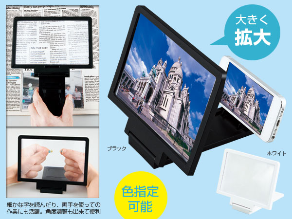スタンドタイプで使用できる大きなサイズの拡大ルーペ板です。いちいち手で見たいところを動かしたりしないでも楽ですし、両手が使えるので細かな作業をするときなどにも便利。近いところが見えにくいというと老眼を思い出しますので敬老の日の記念品や高齢者にオススメのアイテムですが、若い方でも趣味などでの細かな作業でこういったものがあるととても楽に作業をすることができるので便利です。また子供では観察などで使用したりするのにも活躍できそうです。
