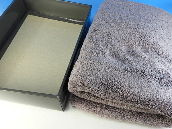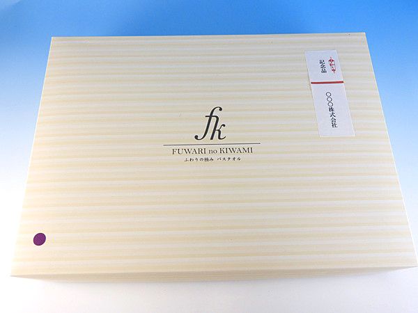 ふわっとしたバスタオル1枚のパッケージです。しっかりとした化粧箱に入っているのでギフト用としてとても適しています。名入れはできませんが「のし」や「のしシール対応」なので気軽に企業PRをすることができます。あまりバスタオルはもらうことが無いので貰えると嬉しいということもあり注目を集めています。価格はやや高めですが200円位の小物に名入れをしたときと同じ程度の単価なので印象UPを取るか、どうでもいいような雑貨で気を引くかの意識の違いでご検討いただけると良いと思います。