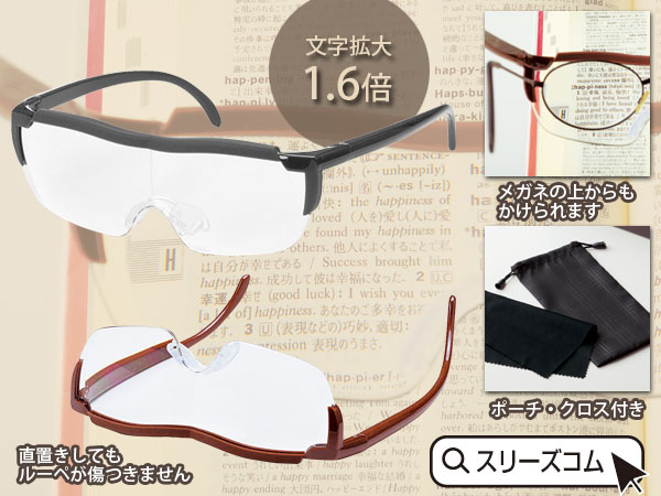 拡大率は1.6倍なので、度が強すぎなく、ちょっと小さ目の文字を読んだり細かい作業をするときに適した度になっているので趣味や作業の普段使いに適しています。