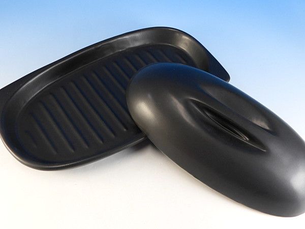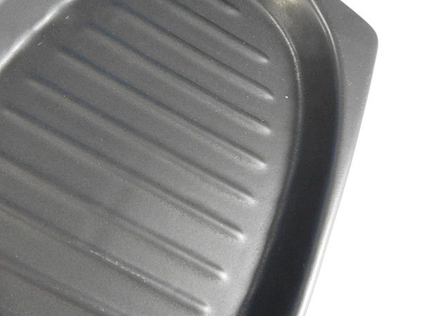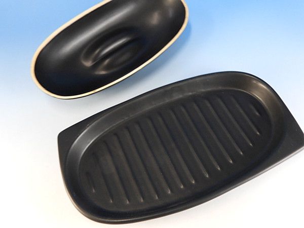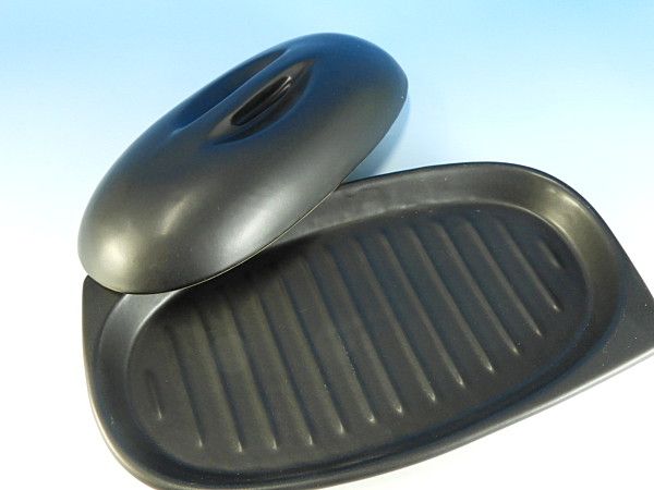 フタ付なので蒸し焼きが出来ると共に、肉や魚なら余分な脂を落とすことが出来るように底面に溝がついているのもポイントです。