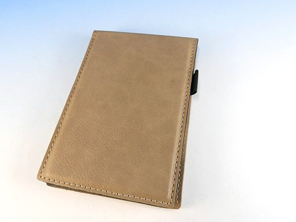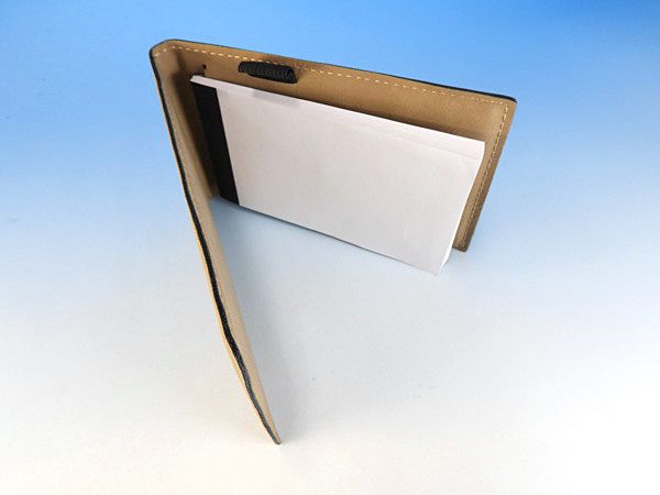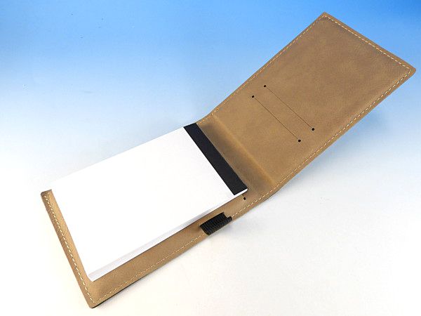 レザー風のカバーがついたメモパッドです。