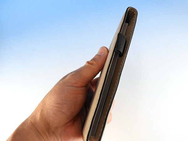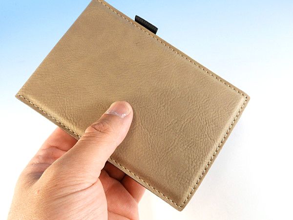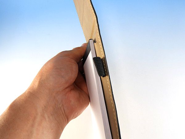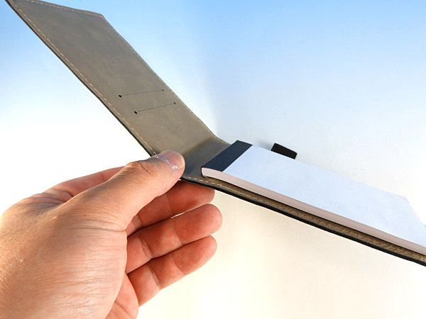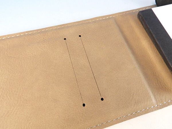 カバーにはポケットがついているのでカードや名刺などをちょっと入れるのに便利です。側面にはペンをホールドしておくことができるホルダーがついています(ペンはついていません)バッグの中に携帯するときに便利でビジネスシーンにも相応しいまとまったアイテムです。