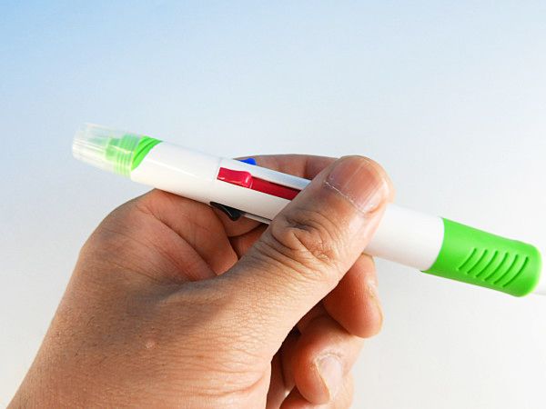 普通の4色ボールペンからワンランク上になった仕様のボールペンです。ボールペンの逆部分には蛍光ペンがついています。