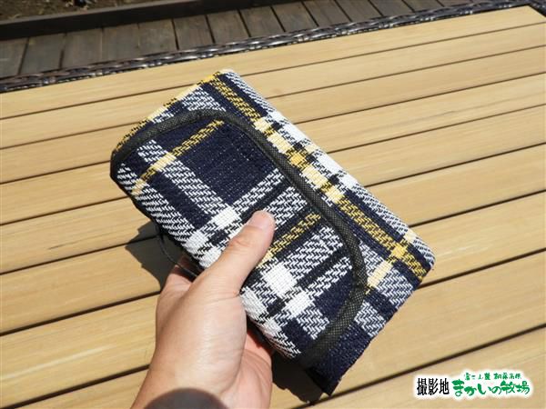 収納時はとてもコンパクトになるのが便利なポイントで折り畳みクーラーバッグ位な感じです。裏面は水がしみこみにくい素材を使用しているので芝生の上などでも使うことができます。ちょっとしたカワイイアウトドアグッズのような感じで活用できます。