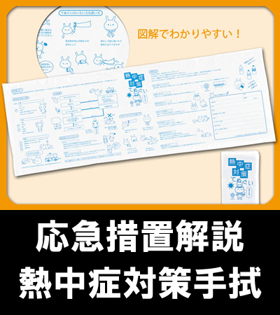 こちらになり、手拭ですが、熱中症の対策がズバリできる内容です。あちこちで販売されている対策品も重要ですが、生命の危険がある今回の酷暑などでは、非常に重要なアイテムとしておすすめです。