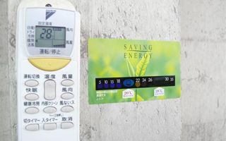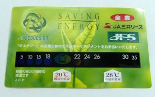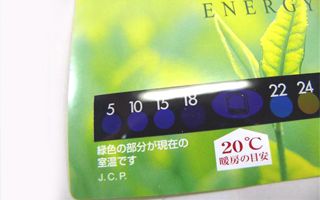 温度計のシートがついているので気温と快適温度の暖房と冷房の基準値が簡単に確認できるステッカー。